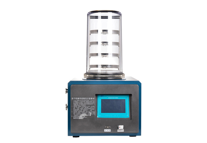 產品在干燥過程能保持物料的原有成份和活性成份及物料形體不受損。開機后將物料投入物料箱內進行冷凍。物料的冷凍過程,一方面是真空系統進行抽真空把一部分水份帶走。另一方面是物料受凍時把某些分子中所含水份排到物料的表面凍結,達到冷凍要求后,由加熱系統對物料加熱干燥,通過抽真空把物料中所含的水份帶到冷凍捕集箱結凍,達到物料冷凍干燥要求。
